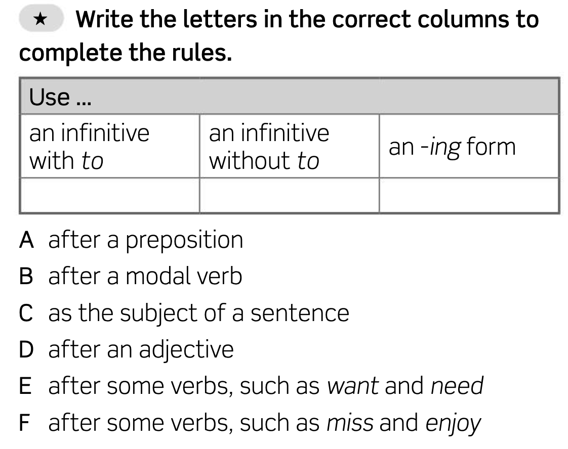 Repaso de verbos que terminan en -ing / base form / to+base form